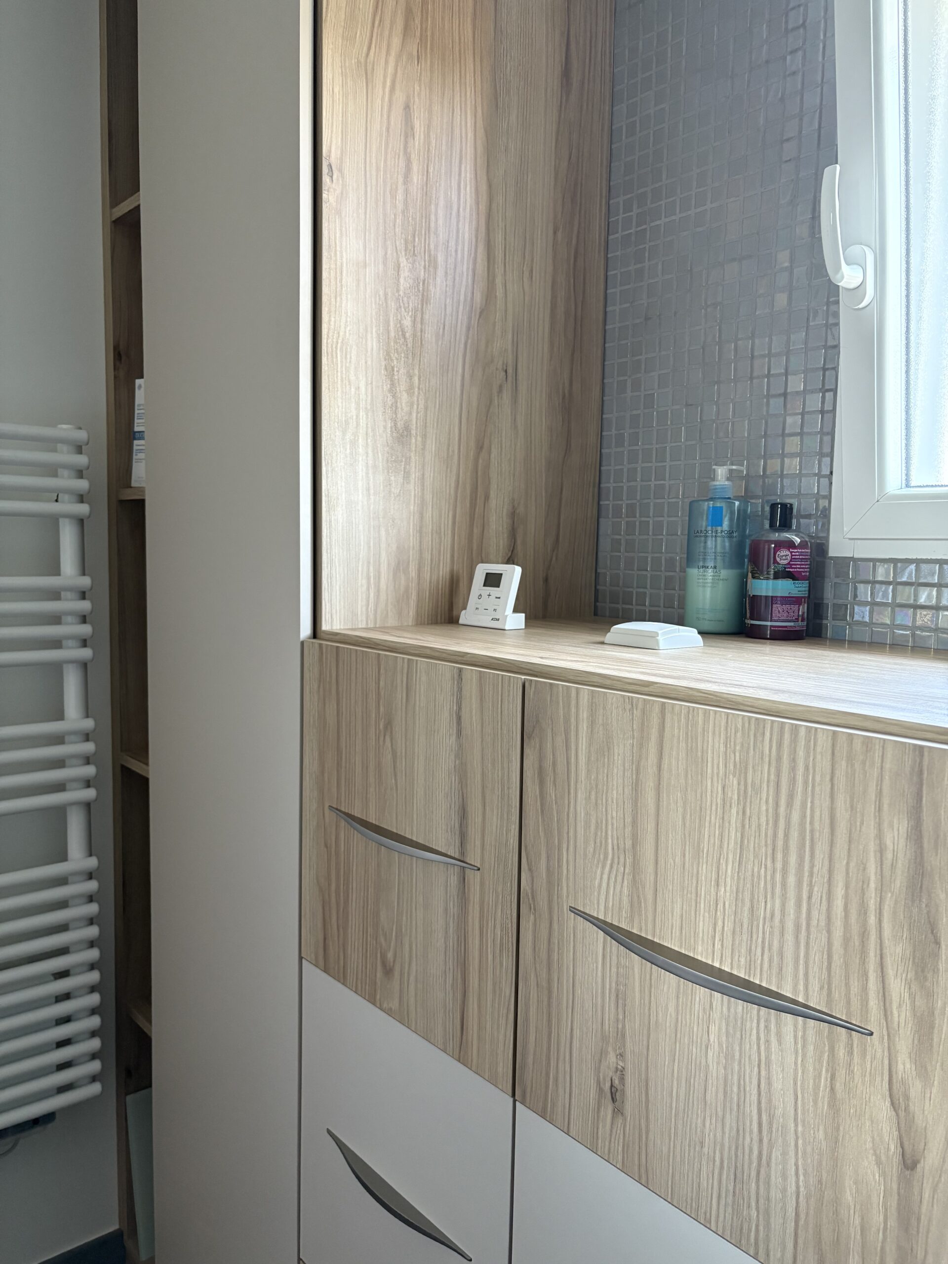 Cette salle de bain a été conçue sur mesure pour allier confort, esthétisme et simplicité au quotidien.