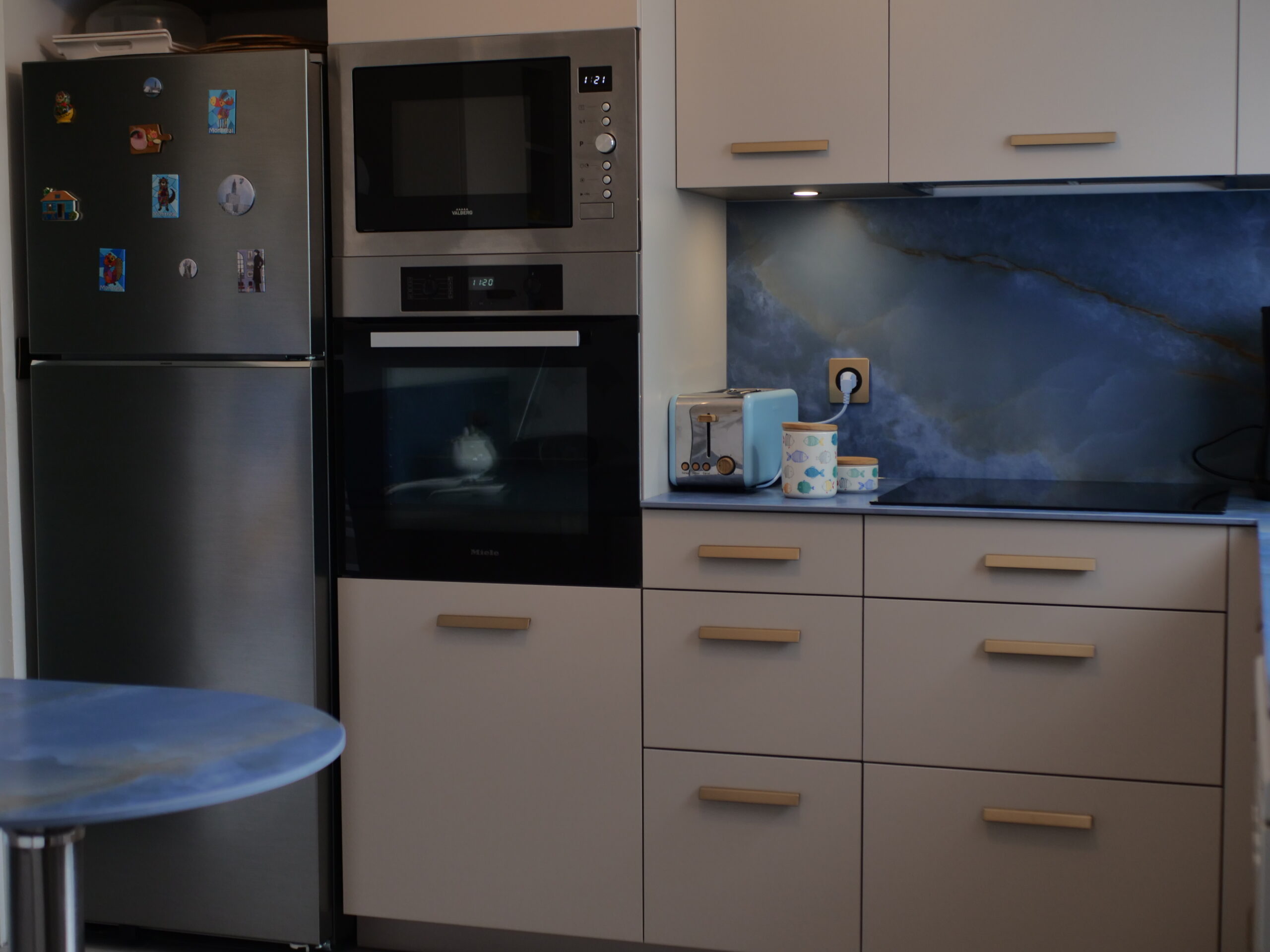 ✨ Cuisine finition bleu soyeux.